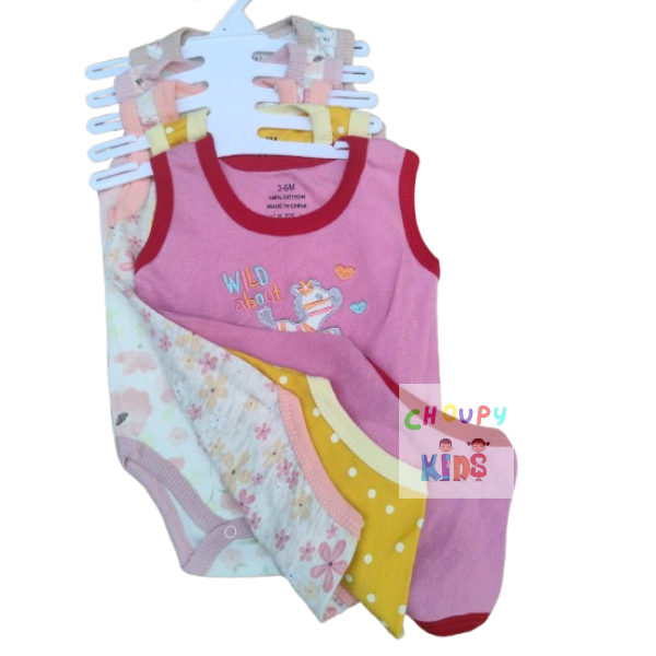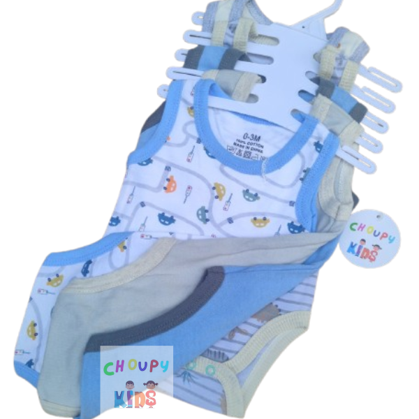 Ce produit, les Bodies démembrés colorés et de couleur blanche en packs des 5 pièces sont spécialement conçus pour les bébés de 0 à 9 mois. Fabriqués en 100% coton, ils offrent un confort optimal pour la peau délicate des bébés. Avec ces bodies, votre supers Choupy sera à l'aise toute la journée.