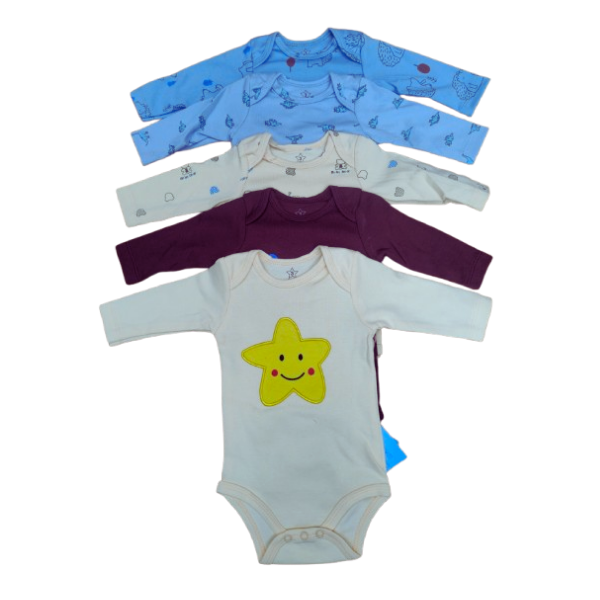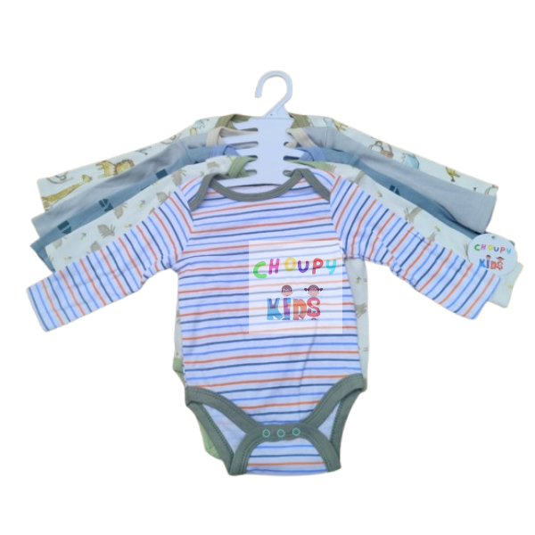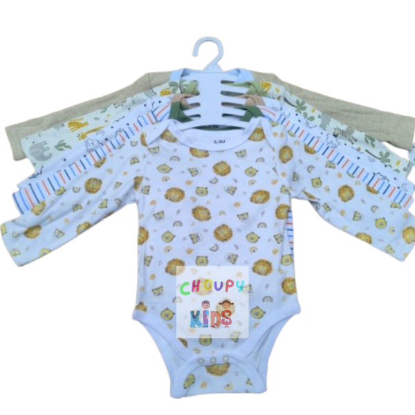 Ce produit, les Bodies longues manches en packs des 5 pièces sont spécialement conçus pour les bébés de 0 à 9 mois. Fabriqués en 100% coton, ils offrent un confort optimal pour la peau délicate des bébés. Avec ces bodies, votre supers Choupy sera à l'aise toute la journée.